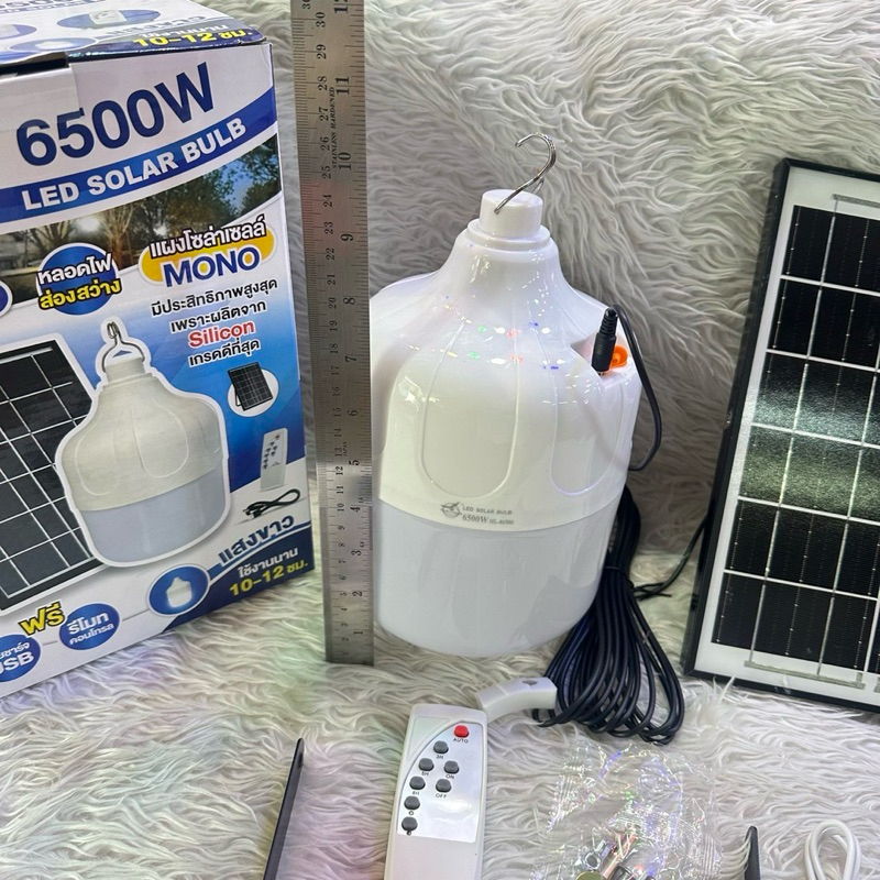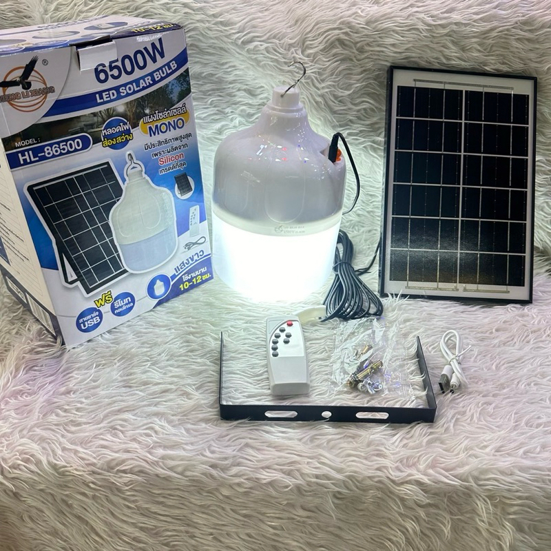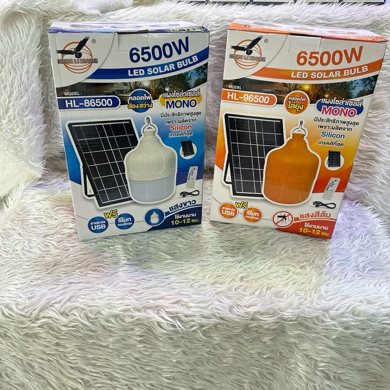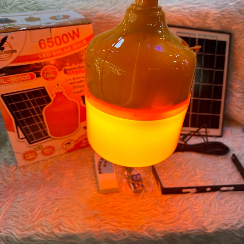 หลอดไฟตุ้มโซลาเซลล์ขนาดใหญ่ 6500 วัตต์ ยี่ห้อ HENG LI XIANG มี 2รุ่น รุ่นเเสงขาว (HL-86500)เเละรุ่นเเสงไล่ยุง (HL-96500)