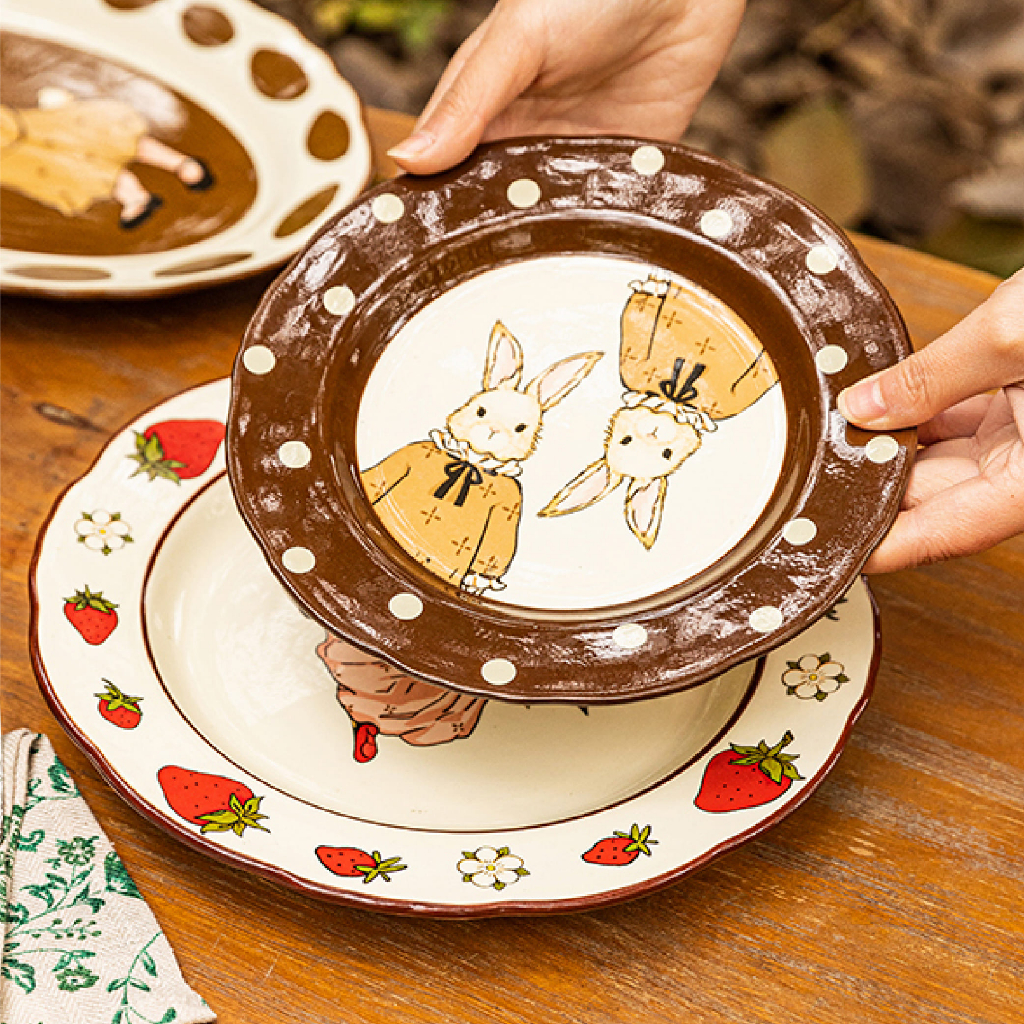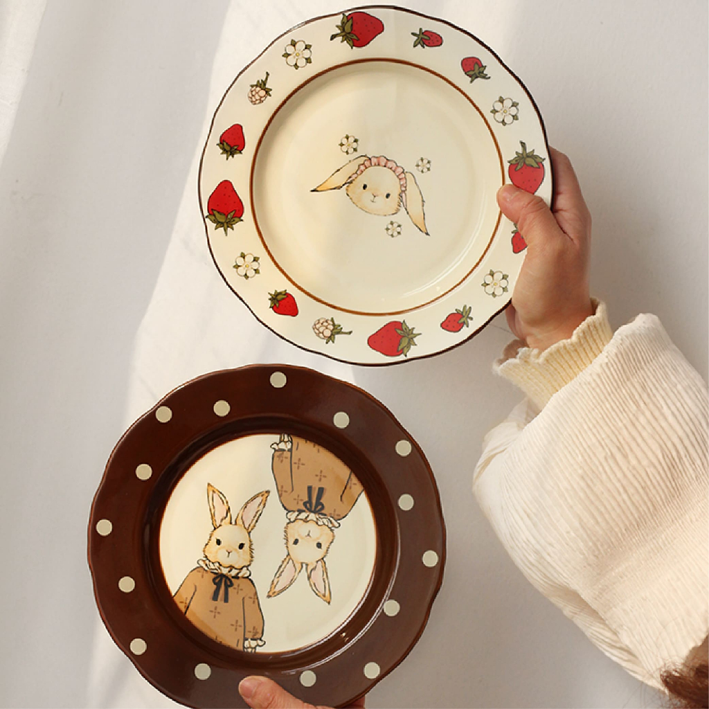 จาน-ชามเซรามิก คอลเล็คชั่น Vintage Bunny เซรามิกลายน้อนกระต่ายสุดน่ารัก วินเทจ🤎ของขวัญขึ้นบ้านใหม่ แต่งงาน🐰|Lassiedecor