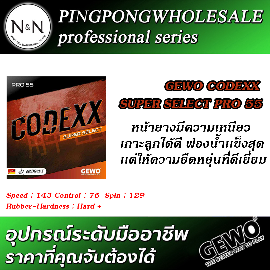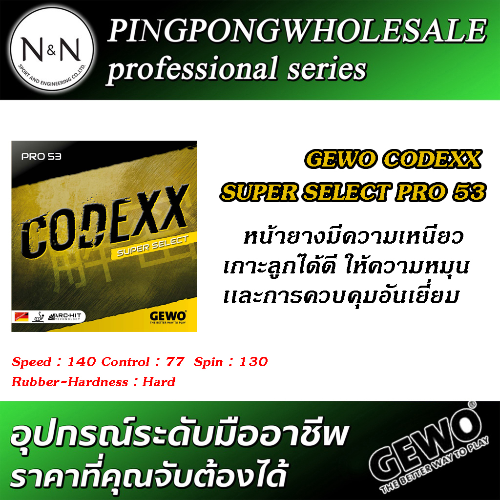 ยางปิงปอง Gewo Codexx Super Select รุ่นใหม่ล่าสุด ยางปิงปองเเมดอินเยอรมันจากเเบรนด์ GEWO