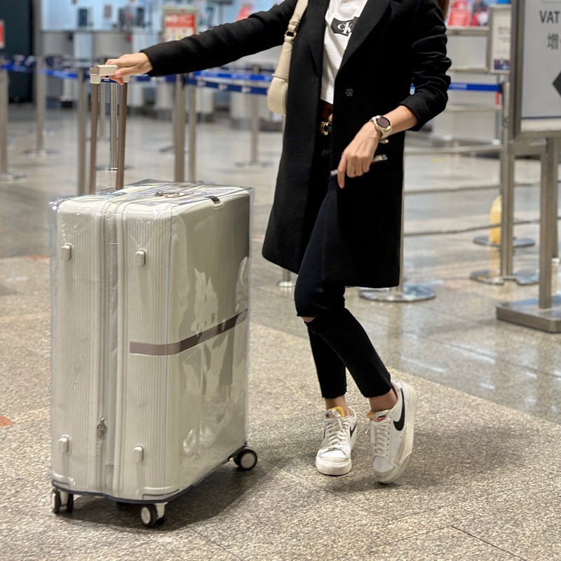 ผ้าคลุมกระเป๋าเดินทาง PVC ใสพิเศษ กันน้ำ กันฝุ่น รุ่นใหม่ แถบตีนตุ๊กแกแผ่นใหญ่