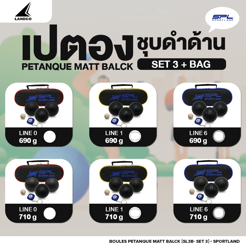 SPORTLAND Collection ลูกเปตอง สำหรับฝึกซ้อมกีฬา SPL Boules Petanque MattBalck SL3B Set3+Bag (1750)