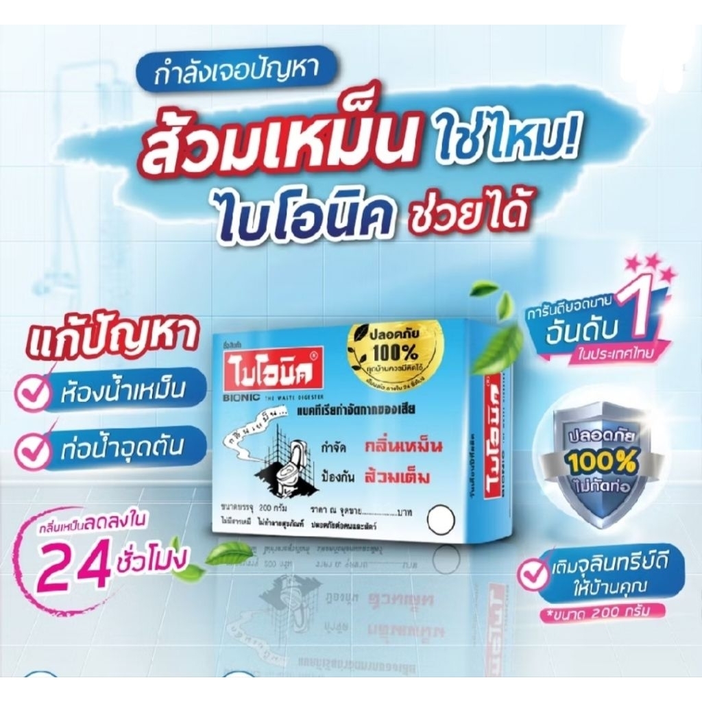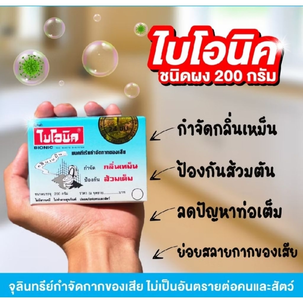 BIONIC จุลินทรีย์ป้องกันส้วมเต็ม ไบโอนิค ขนาด 200 กรัม (กดสั่งซื้อได้ไม่เกิน 20 ชิ้น ต่อ 1 ออเดอร์ 😍ราคาต่อ 1 ชิ้น😍