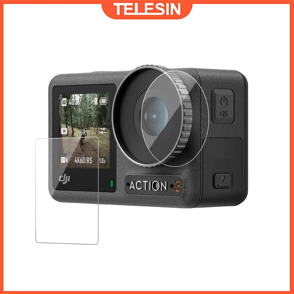 Telesin ฟิล์มกันรอยหน้าจอ เลนส์ กระจก ป้องกัน สําหรับ DJI Action 3 4 อุปกรณ์เสริมกล้อง