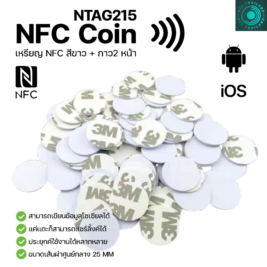 [ส่งด่วน] NFC Coin NTAG215 เหรียญ NFC PVC สี ขาว