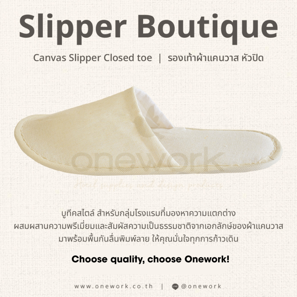 วันเวิร์ค รองเท้าผ้าแคนวาส หัวปิด รองเท้าโรงแรม Onework Canvas Slipper Closed toe Slipper Boutique