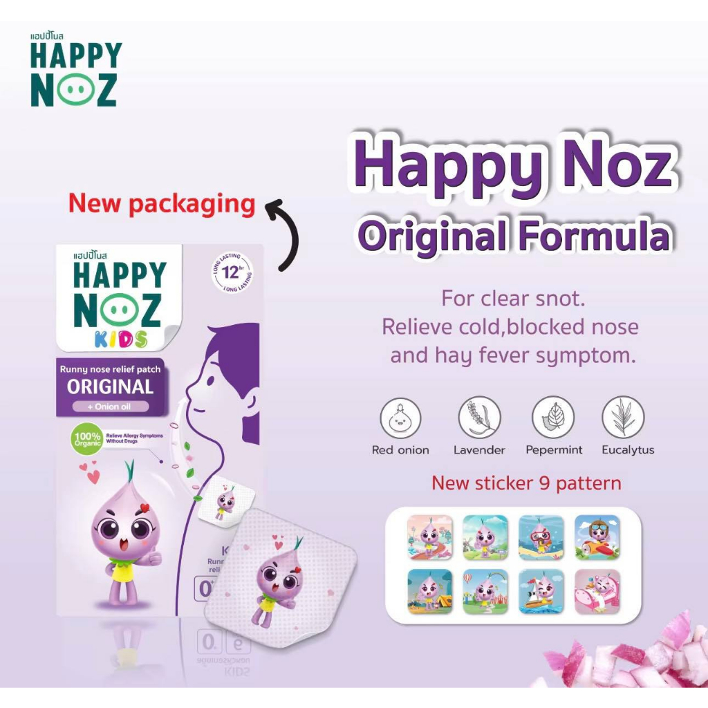 (ส่งด่วน/ส่งทันที🔥) Happy Noz สติ๊กเกอร์หัวหอม แผ่นแปะหัวหอม แก้หวัด เซรั่มหัวหอม