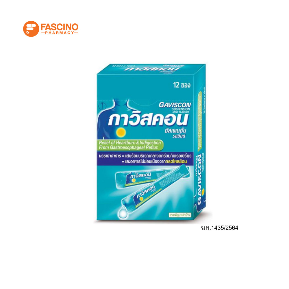 Gaviscon กาวิสคอน ซัสเพนชั่น เปปเปอร์มิ้นต์ 10 มล. 12 ซอง