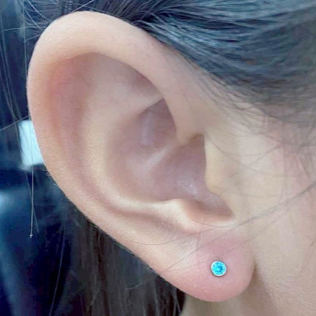 Piercingroom by Jay จิว/ต่างหูแป้นแบน สำหรับผิวแพ้ง่าย Aqua Blue CZ Bazel Titanium เกรดการแพทย์ (ราคาต่อชิ้น)