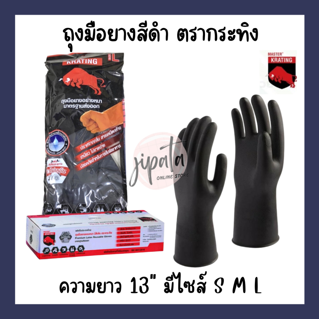 [ยกโหล 12 คู่] ถุงมือยางตรากระทิง สีส้ม ดำ size S,M,L