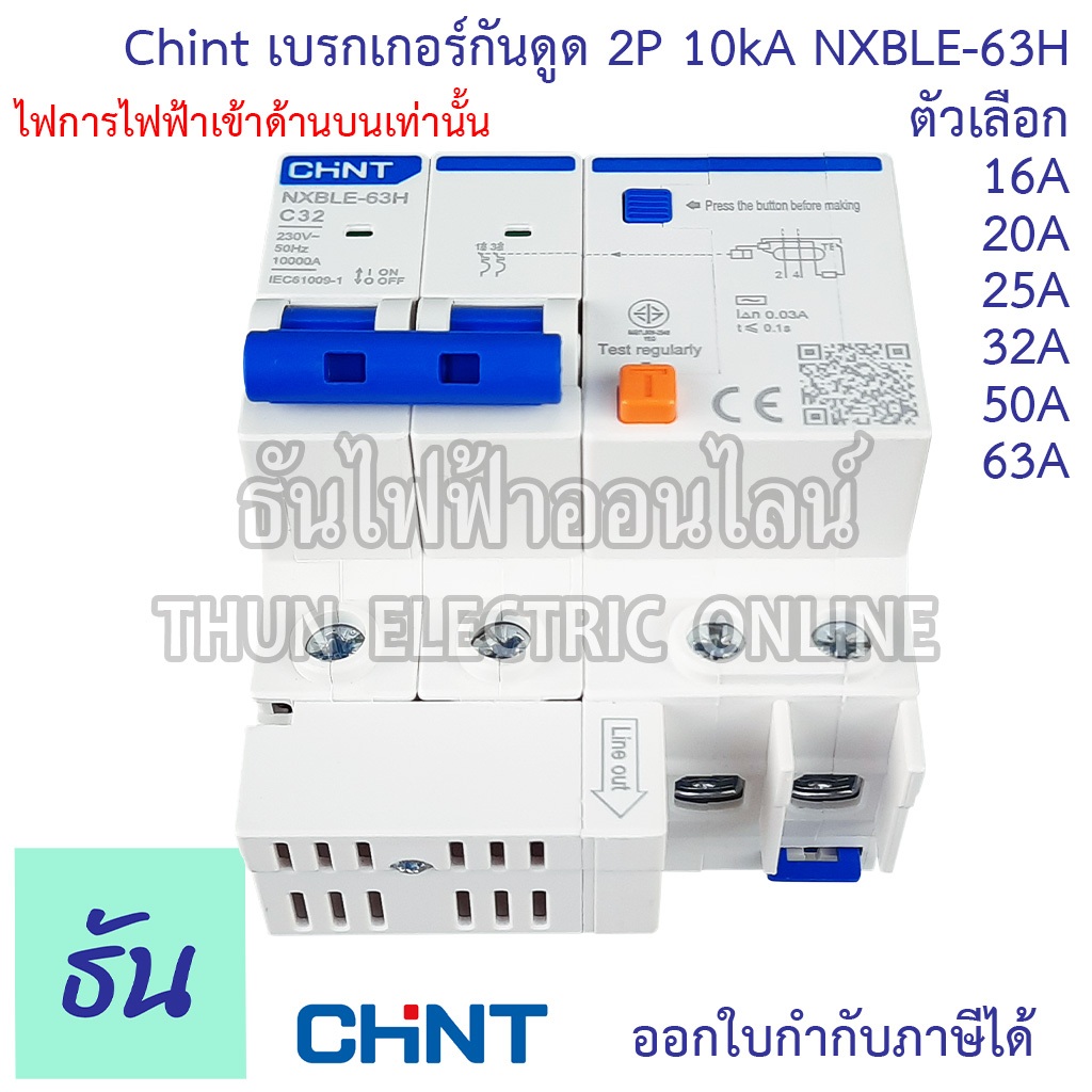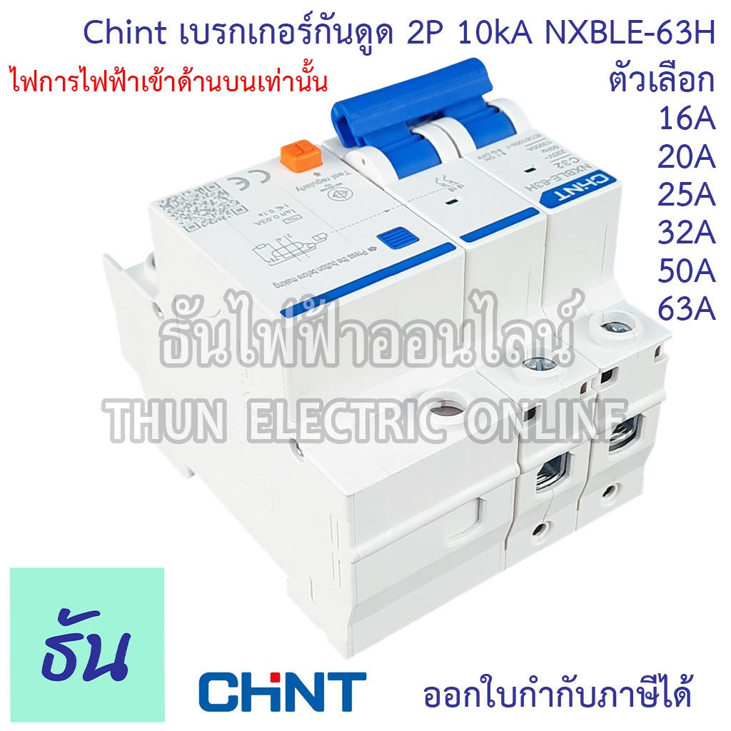 Chint NXBLE-63H เบรกเกอร์กันดูด 2P 10KA 16A 20A 25A 32A 40A 50A 63Aเบรกเกอร์ RCBO เมนเบรกเกอร์ แม่เมน กันดูด เมนกันดูด
