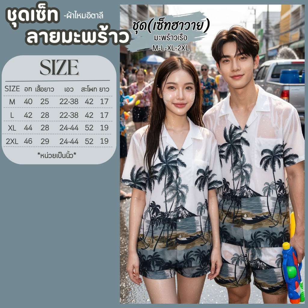 เสื้อฮาวาย ชุดเดรส ผู้ใหญ่/เด็ก ลายมะพร้าวเรือขาว เซตครอบครัว เซตคู่ #พร้อมส่ง(สินค้าขายแยกชิ้น)
