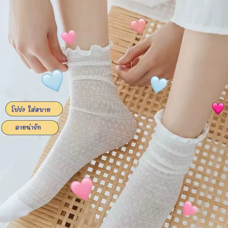 ถุงเท้าลูกไม้ ข้อกลางขอบมีระบาย