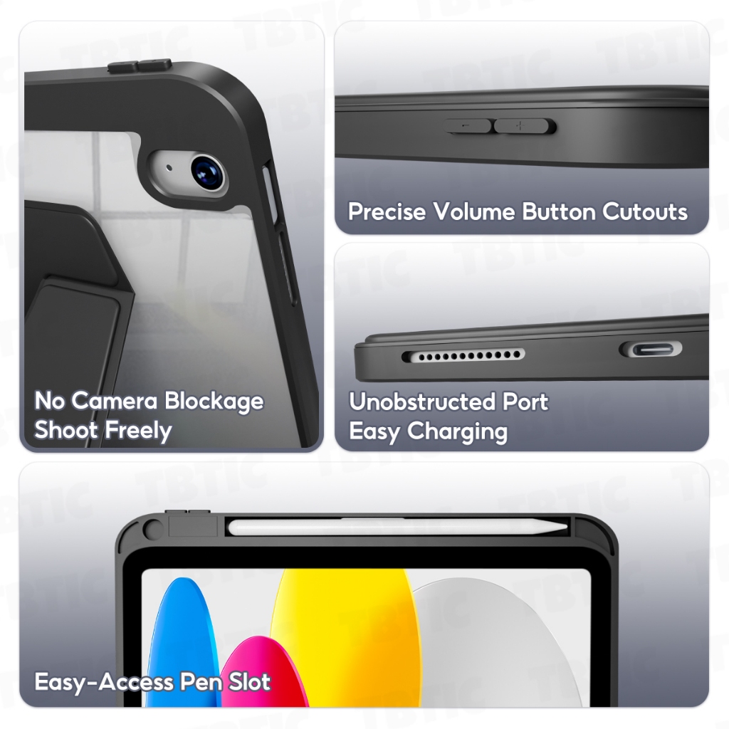 ทีบิก 360° เคส iPad หนังหมุนได้พร้อมช่องเสียบปากกาและขาตั้งเข้ากันได้กับ iPad Air 8 7 6 5 4 Pro 11 2024 M2 M3 M4 12, 11 Gen A16 10 9 8 7th 10.2, Mini7 6 8.3 นิ้ว