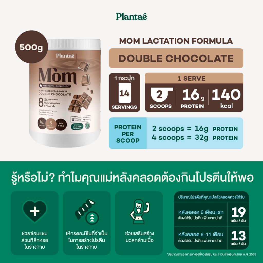 Plantae Mom Lactation Formula กระปุก 500g เพิ่มน้ำนม โปรตีนจากพืช plant based แพลนเต้