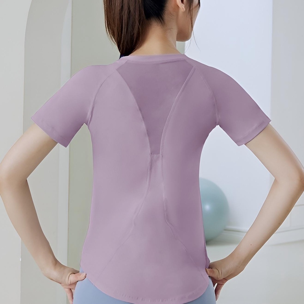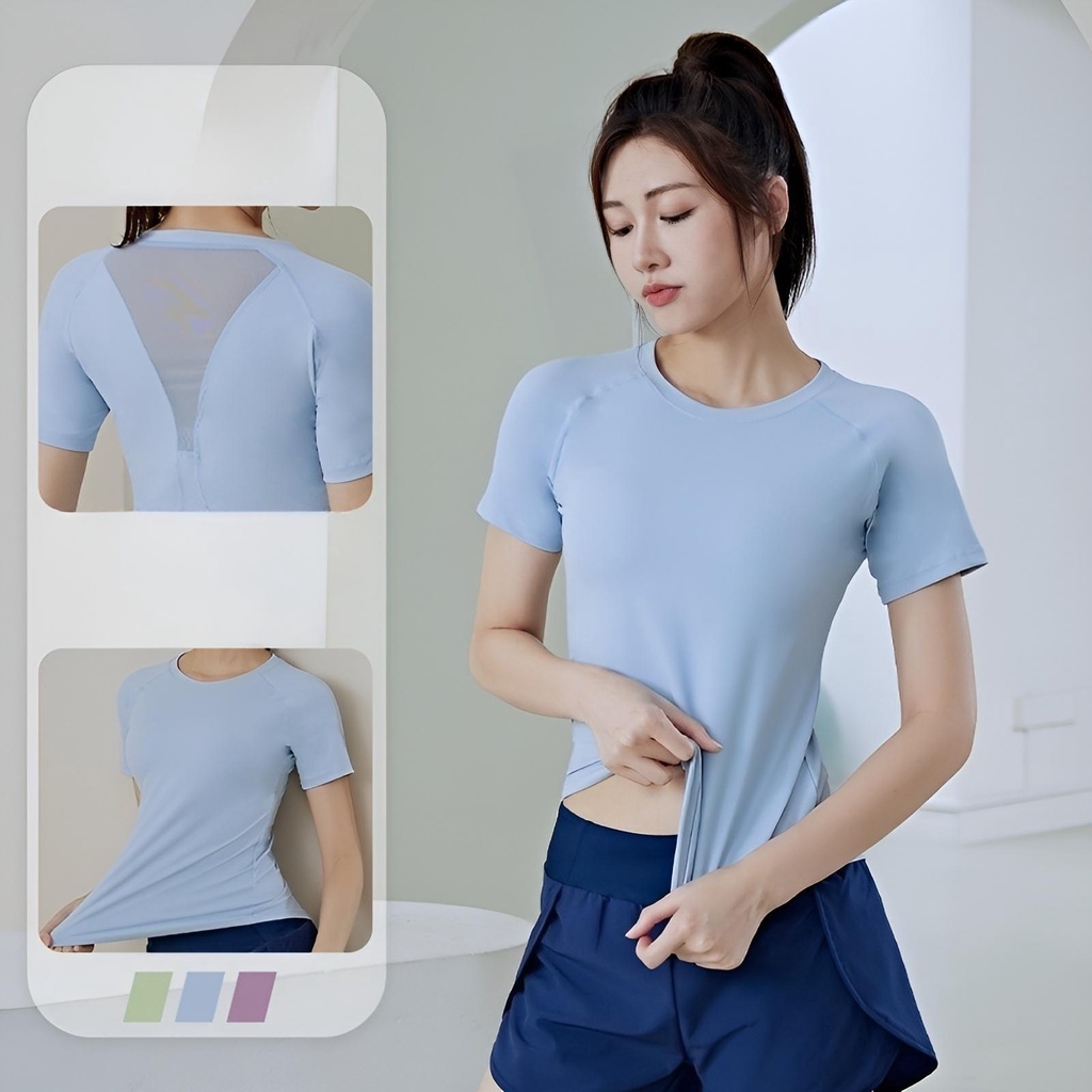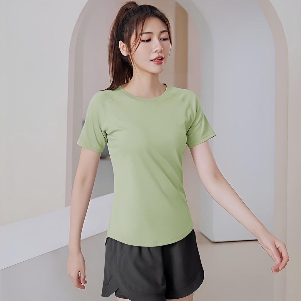 เสื้อยื้อออกกำลังกายผู้หญิงแขนสั้น ทรงเข้ารูป ผ้านิ่ม ยืดหยุ่นได้ดีมาก ระบายอากาศได้ดี Size S-2XL