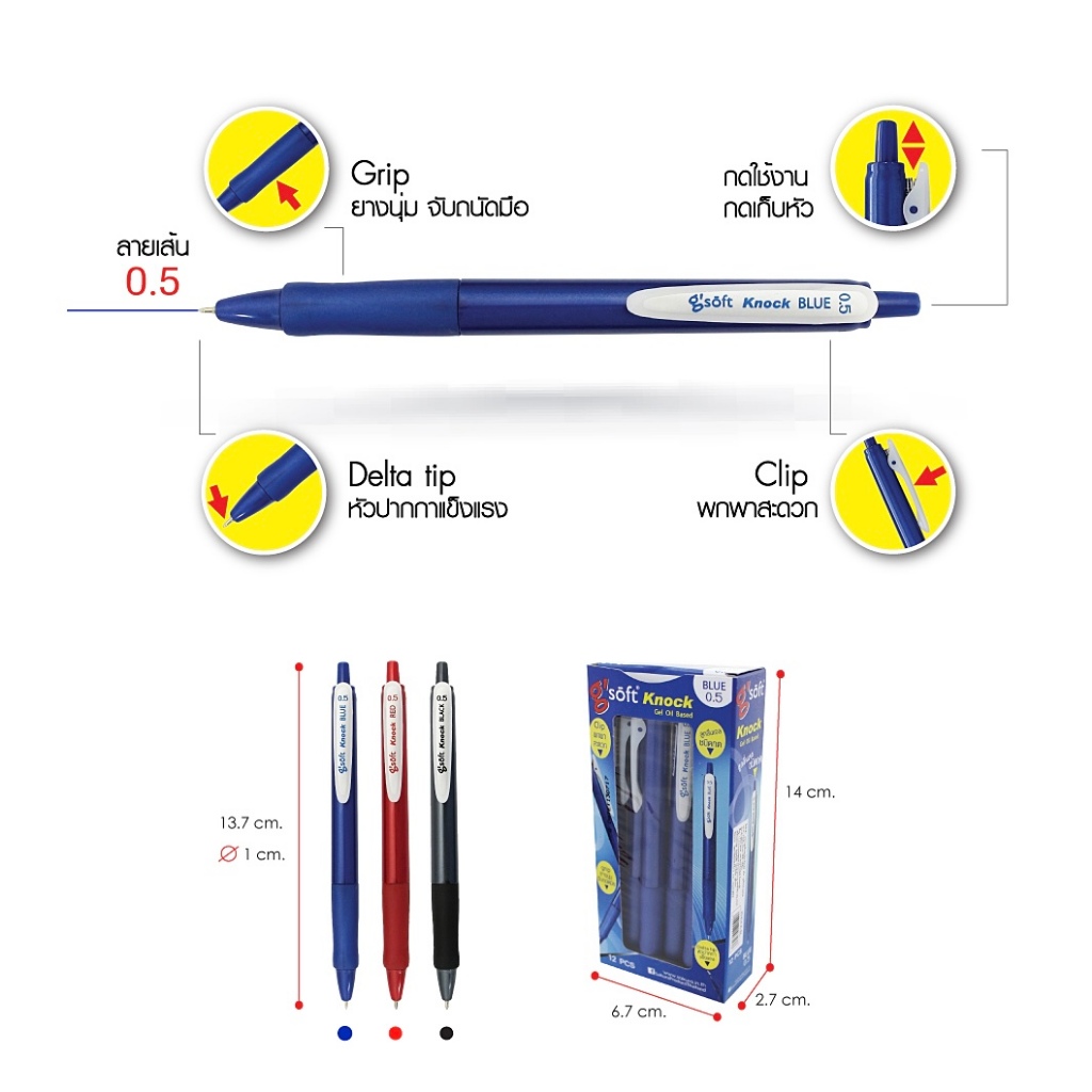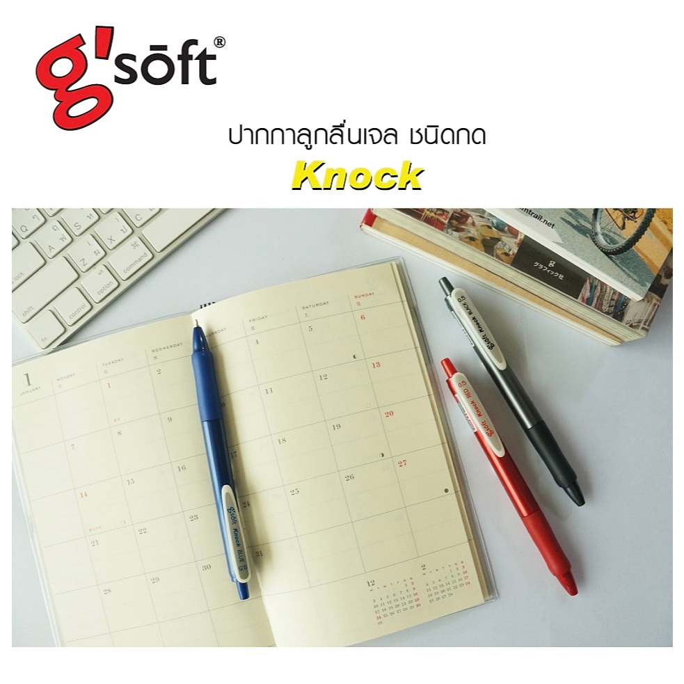 (ยกกล่อง12ด้าม) ปากกา ปากกาลูกลื่นเจล G'soft KNOCK 0.5mm