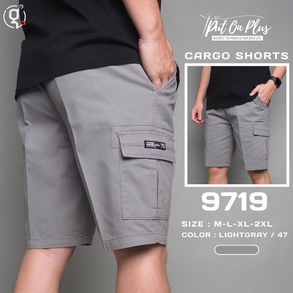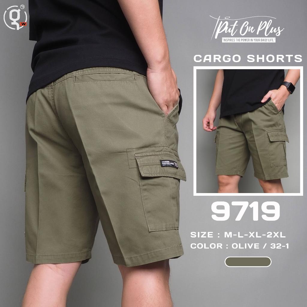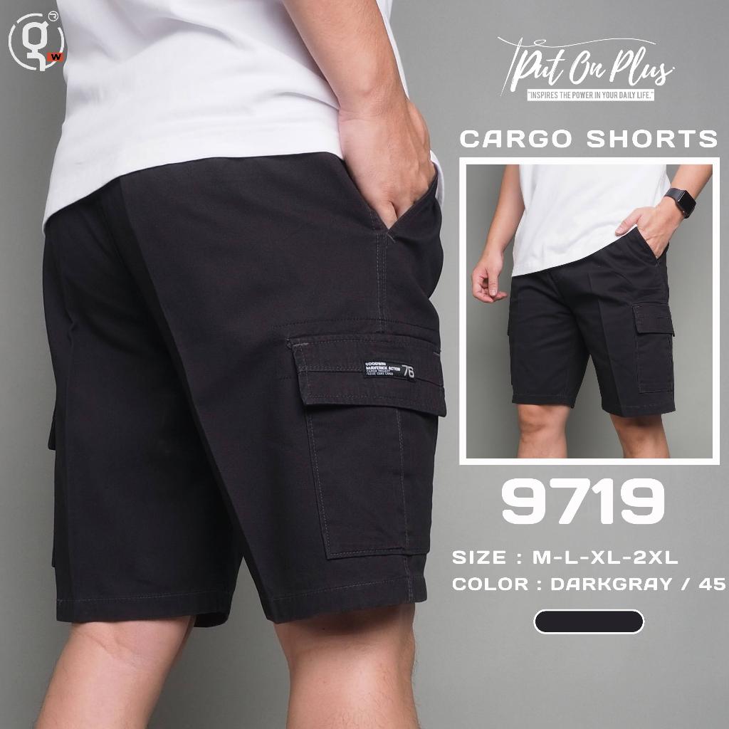 ⚡GW⚡9719 กางเกงขาสั้น ผู้ชาย เอวยืด คาโก้ ผ้าคอตต้อน สีพื้น ยาว 19.5-21.5นิ้ว ไซส์ 30-42 Goodwin Brand