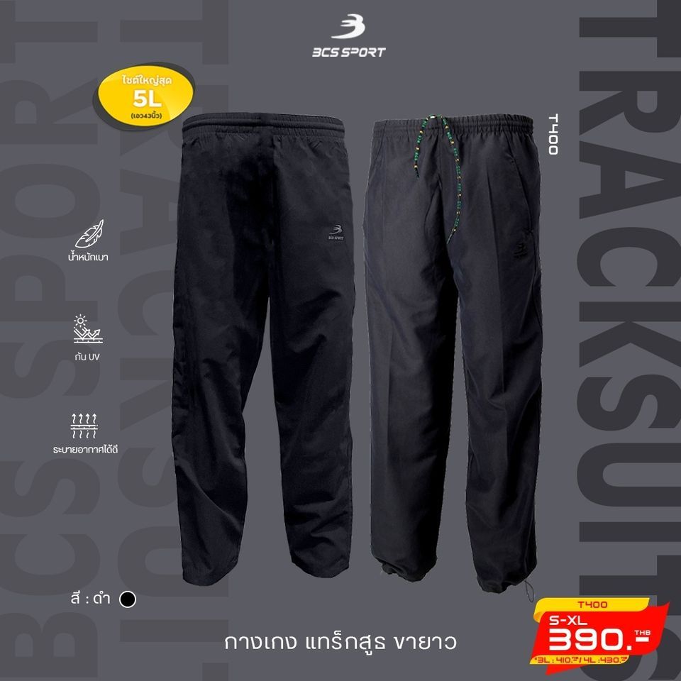 BCS SPORT กางเกงขายาวแทร็คสูท UNISEX สีพื้น กางเกงขายาวแทร็คสูทรหัส T400 ของแท้100%