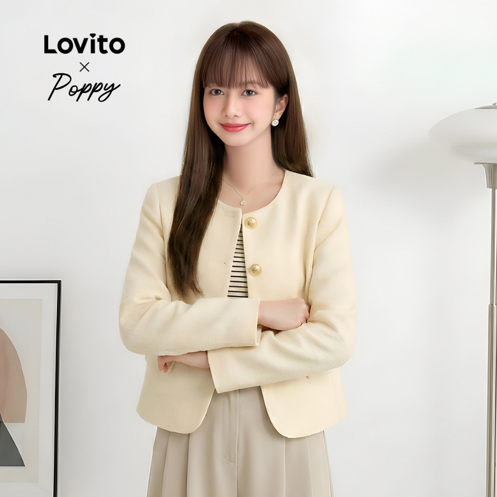 Lovito x Poppy พ็อกเก็ตเบลเซอร์ปุ่มเสื้อเบลเซอร์ฤดูใบไม้ร่วงฤดูหนาวสําหรับผู้หญิง LNA29388 (หลากสี)