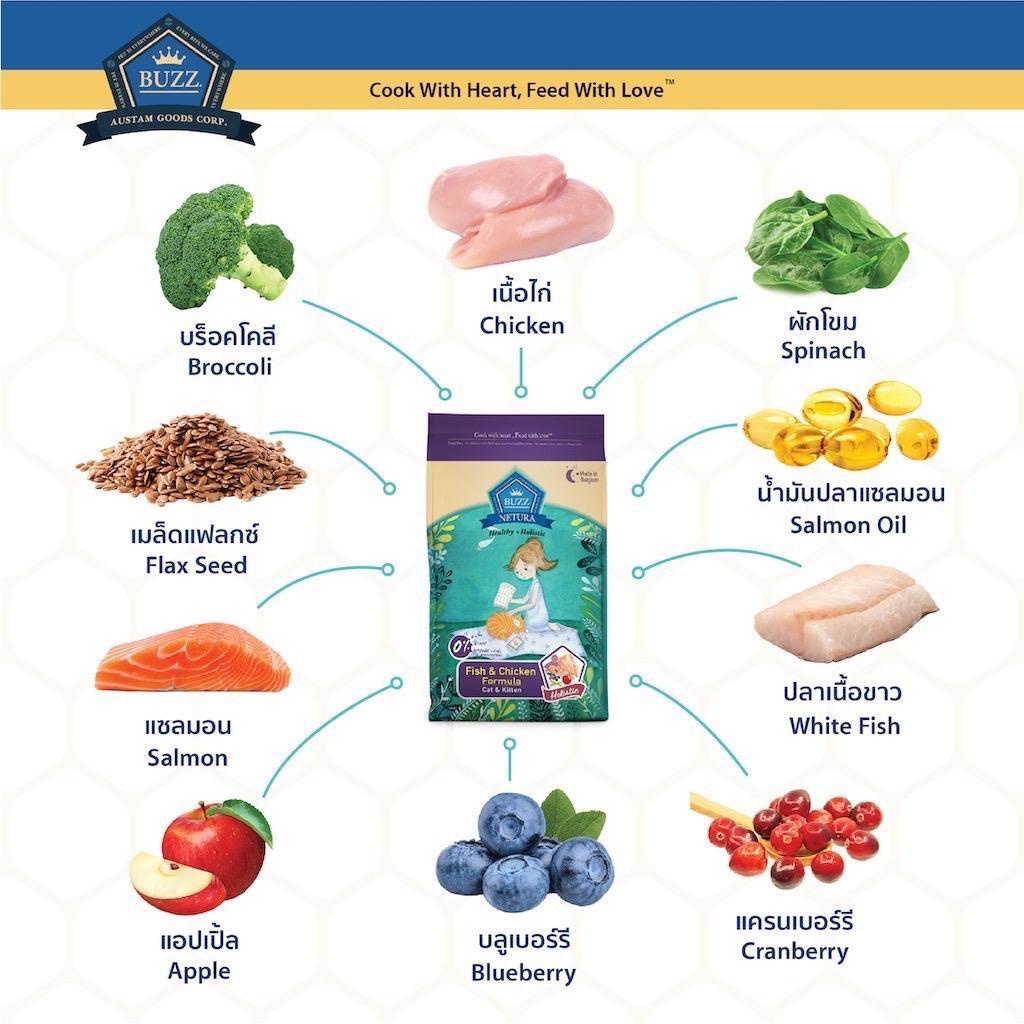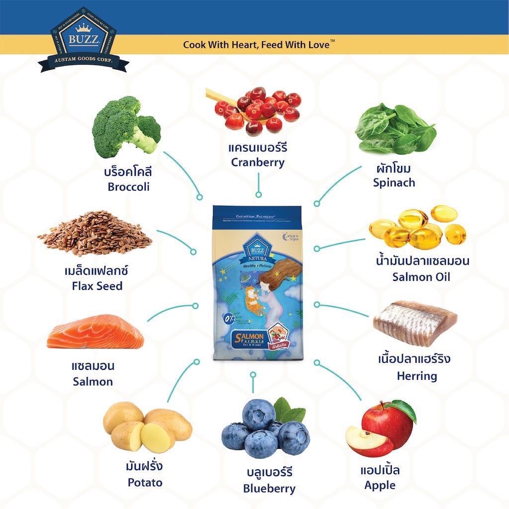 Buzz Netura บัซ อาหารแมวเกรดโฮลิสติก เกรนฟรี ขนาด 1 กิโลกรัม