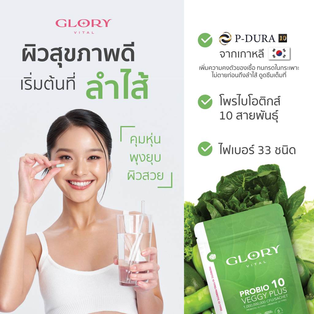 Glory Probiotic Veggy Plus กลอรี่โพรไบโอติกส์ เวจจี้พลัส x1 x2