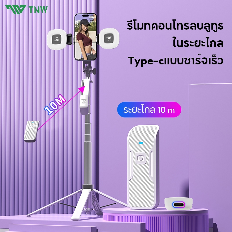 TNW Selfie Stick S30 ไม้เซลฟี่ มีรีโมทเชื่อมต่อผ่านบลูทูธ ขาตั้งกล้องสี่ขา ขาตั้งกล้องไม้เซลฟี่ไร้สาย ยืดได้ถึง 3 In 1