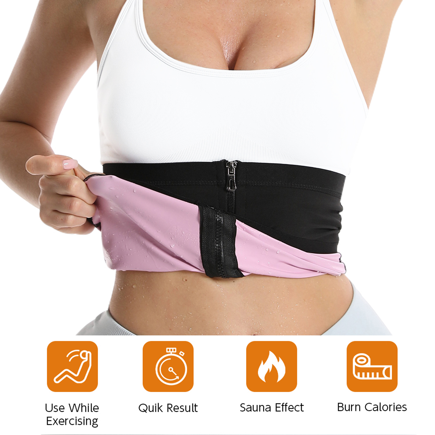 เทรนเนอร์เอวสําหรับผู้หญิง - เข็มขัดรัดหน้าท้องพร้อมที่กันจอนเอวเหงื่อซาวน่าสําหรับการลดน้ําหนัก & การสร้างร่างกาย