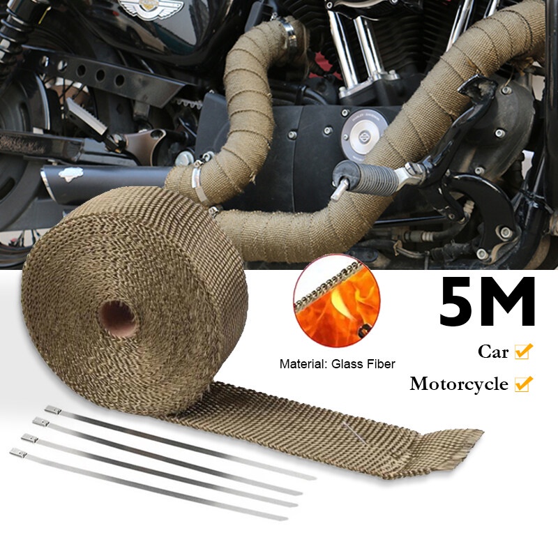 COD ผ้าพันท่อไอเสีย ยาว 5 เมตร กว้าง 5 ซม. ฉนวนกันความร้อนหุ้มท่อไอเสีย ท่อเชื้อเพลิง ท่อเครื่องยนต์ EXHAUST HEAT WRAP
