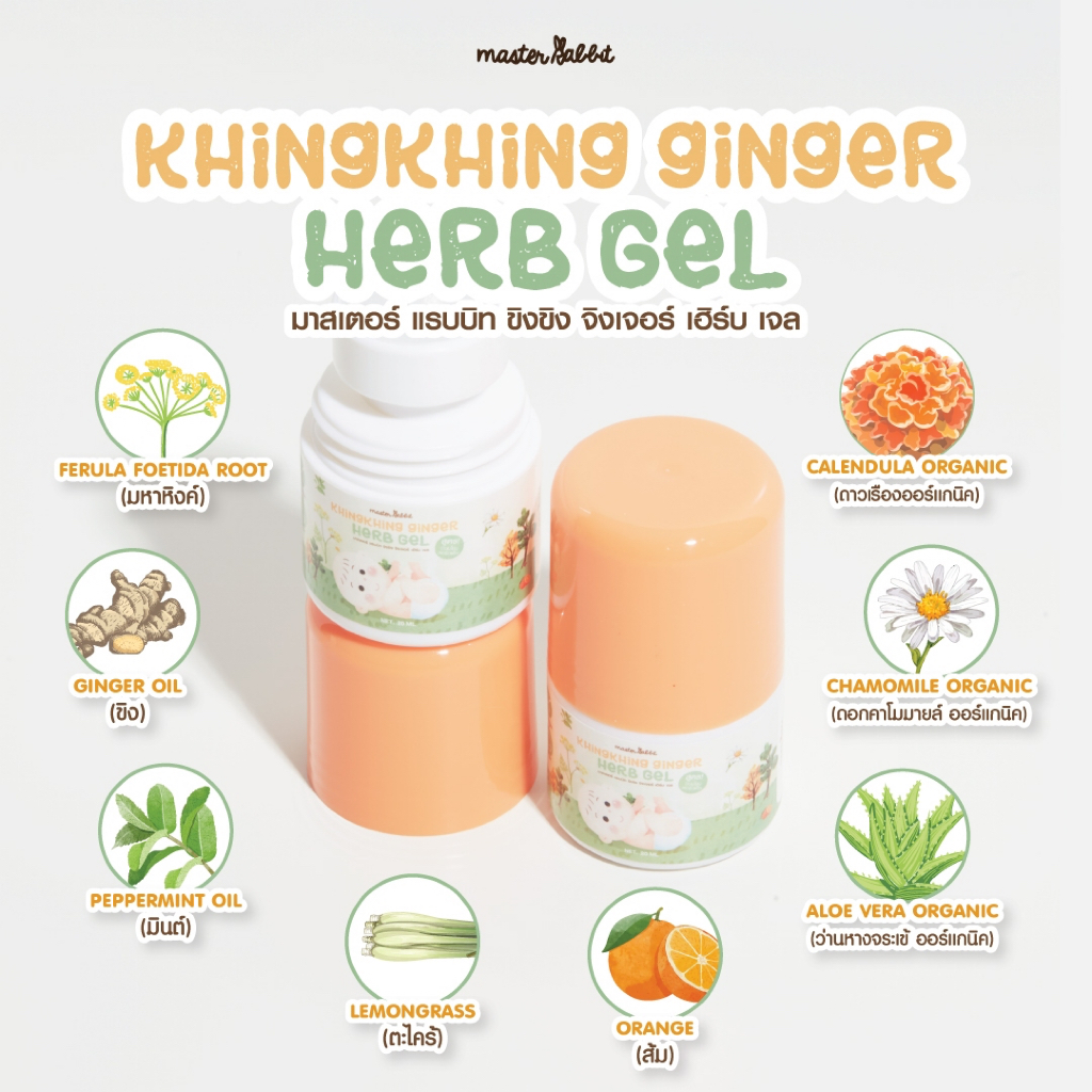 มหาหิงค์ Masterrabbit Khingkhing Ginger Herb Gel มาสเตอร์แรบบิท ขิงขิง จิงเจอร์ เฮิร์บเจล