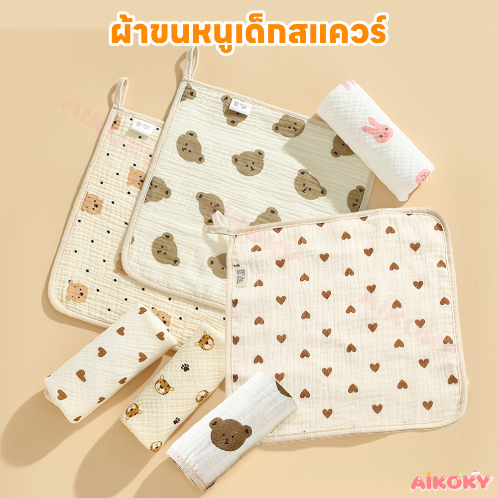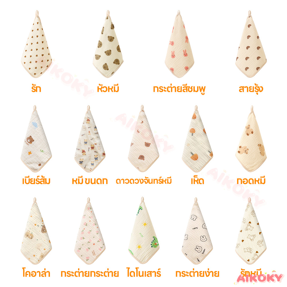 AIKOKY ผ้าเช็ดหน้าเด็ก ผ้าเช็ดมือเด็ก เนื้อผ้านุ่ม ผ้าสาลูเด็ก ดูดซับน้ํา ผ้าเช็ดปากเด็ก