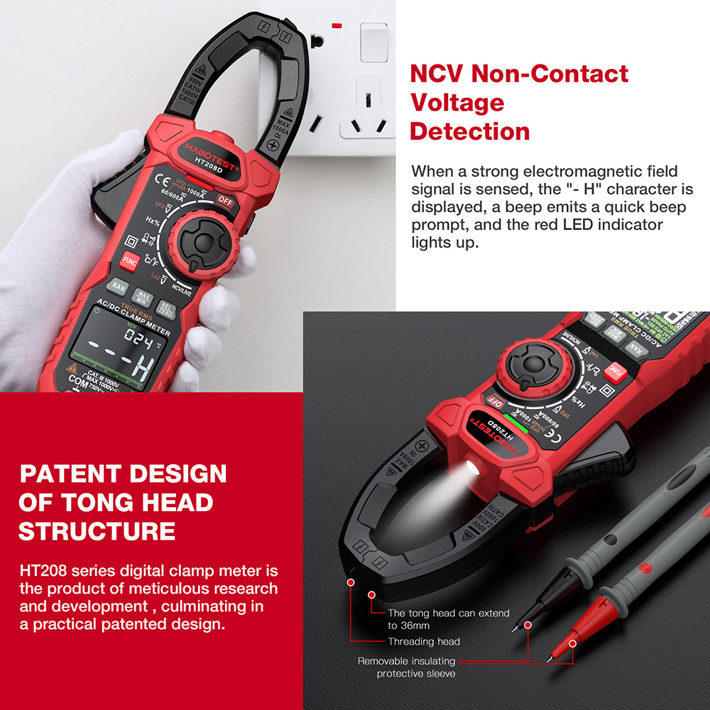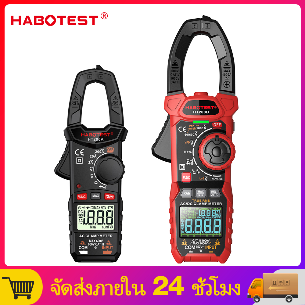 【มาถึงภายใน 3 วัน】HABOTEST HT208D HT200A แคลมป์มิเตอร์ AC/DC มิเตอร์แบบดิจิตอล 1000V/1000A มัลติมิเตอร์ แคลมป์ NCV