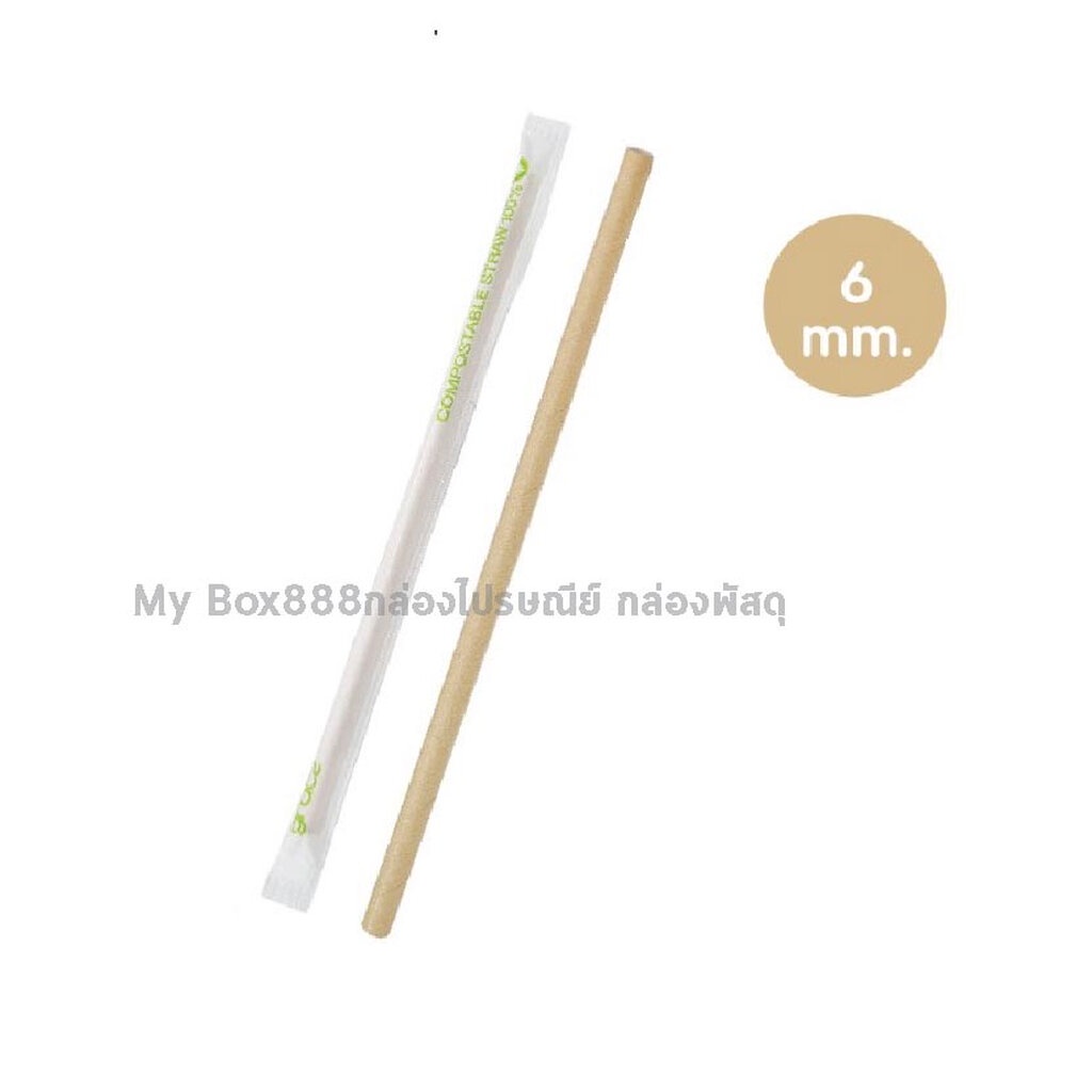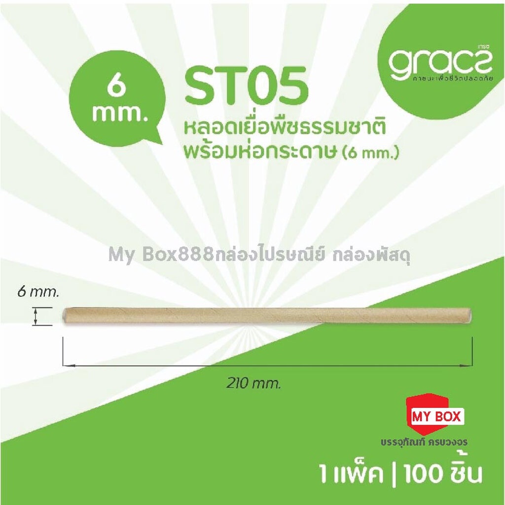 (แพ็ค 100 ชิ้น) GRACZ หลอดเยื่อพืชธรรมชาติ พร้อมห่อกระดาษ ขนาด 6 x 210 มม. รุ่น ST05 (เกรซ ซิมเปิล) หลอดกระดาษ ชานอ้อย