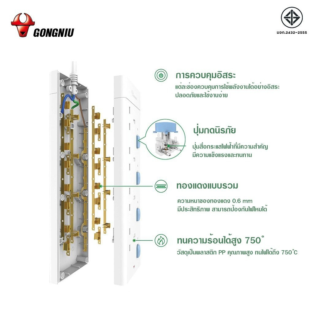 GONGNIU 3m 5m usb ปลั๊กพ่วง ปลั๊ก มาตราฐาน มอก. คุณภาพดี ทำจากทองเหลือง กำลังไฟ 10A-16A