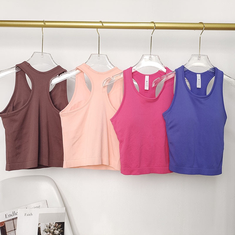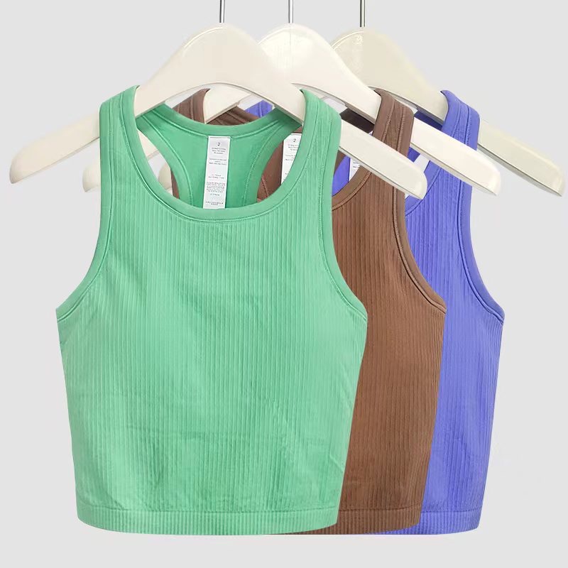 OLALA LEISURE ใหม่ เสื้อโยคะ สีนู้ด พร้อมแผ่นรองหน้าอก สั้น ระบายอากาศ ดันทรง เสื้อกีฬา ผู้หญิง