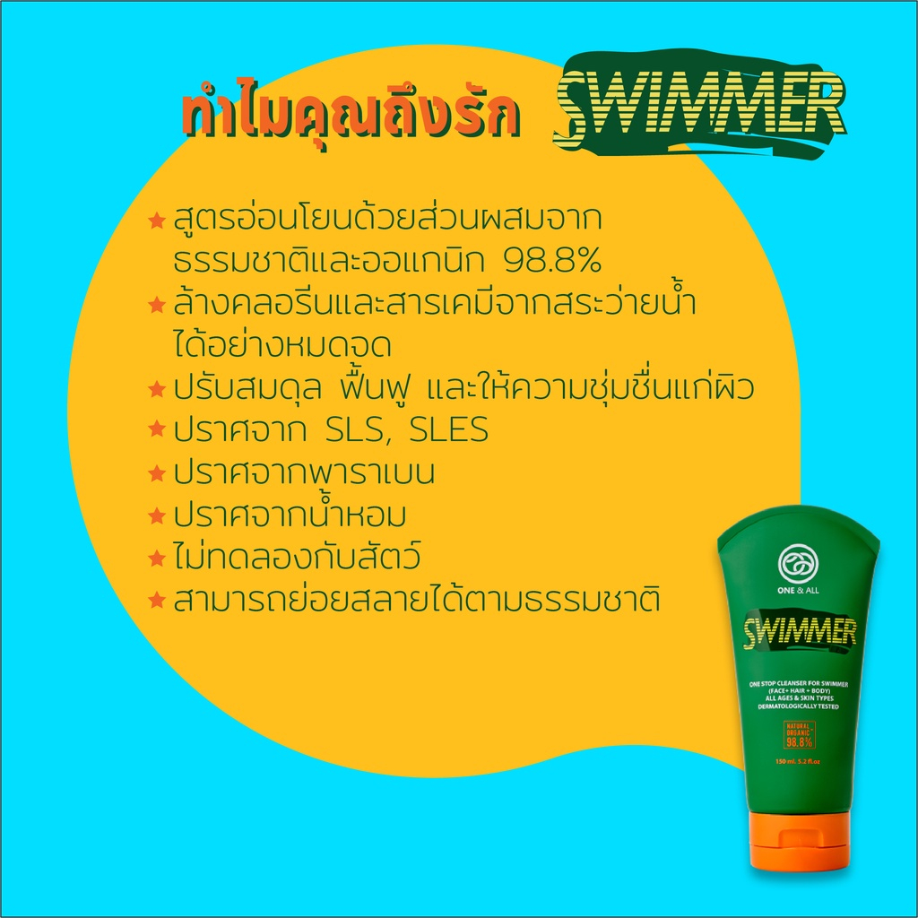 One & All สบู่ทำความสะอาดได้ทุกส่วนของร่างกายและเส้นผม Swimmer One Stop Cleanser Face + Hair + Body (150ml)