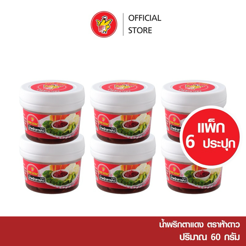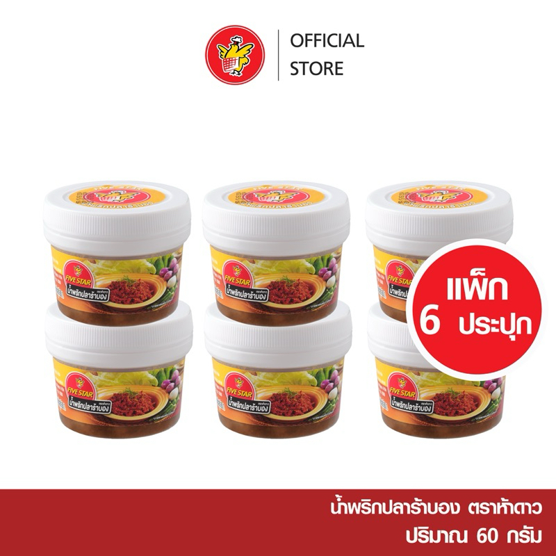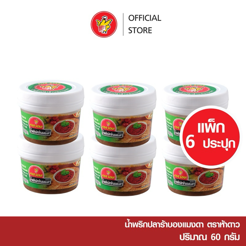 [6กระปุก] แพคน้ำพริกตราห้าดาว 60g สูตร ตาแดง ,ปลาร้าบอง,ปลาร้าบองแมงดา
