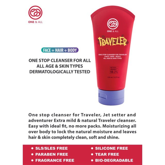 One & All เจลทำความสะอาดสำหรับผู้ที่รักการเดินทาง Traveler One Stop Cleanser Face + Hair + Body (60ml)