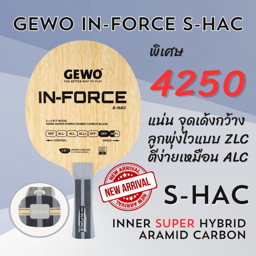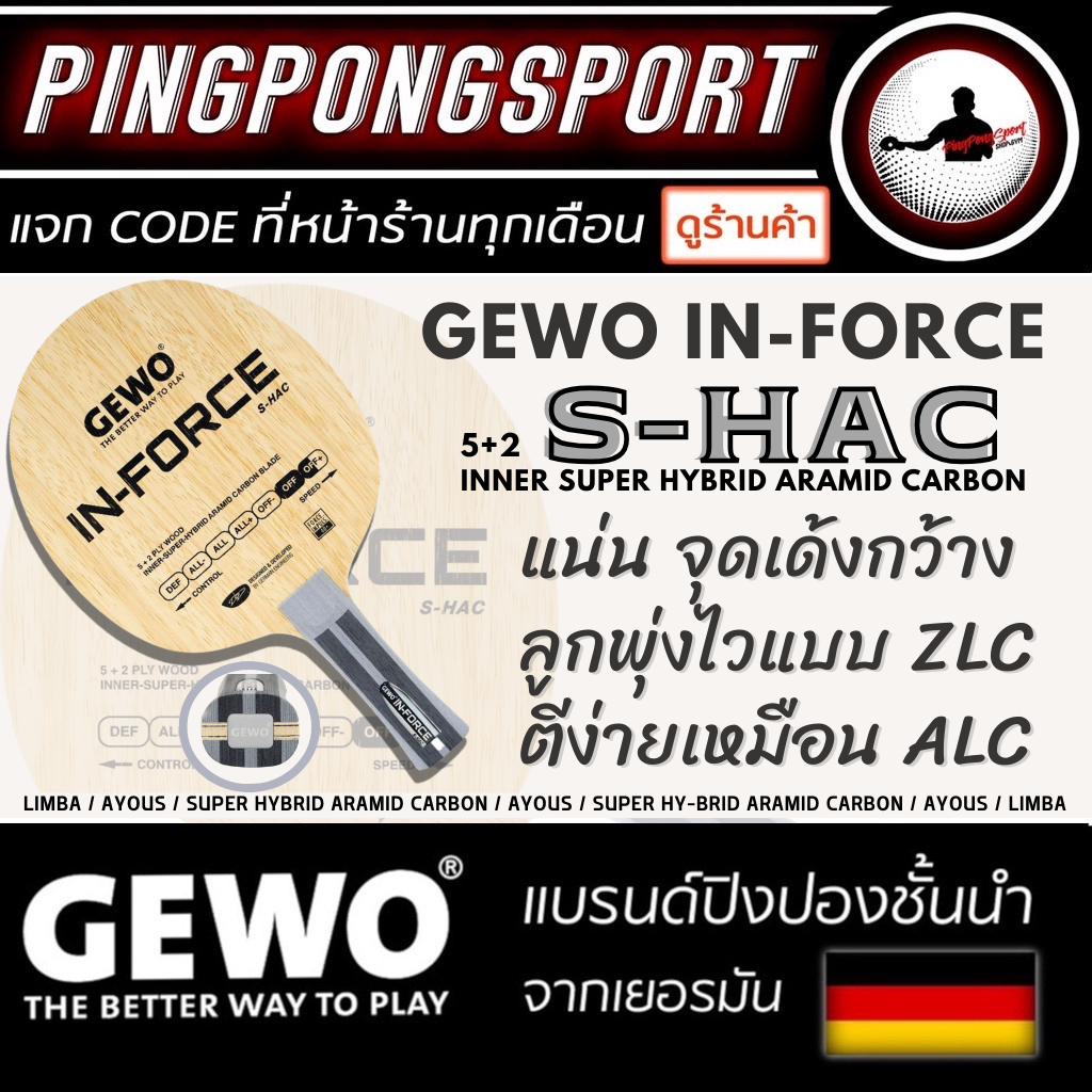ไม้ปิงปองประกอบ ระดับมืออาชีพ GEWO In-Force S-Hac ไม้ปิงปอง พร้อมยางเยอรมัน Gewo 2 แผ่น ราคาพิเศษ