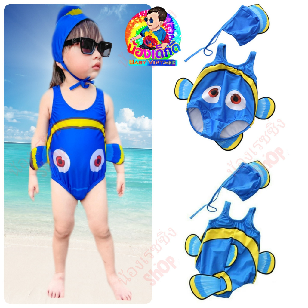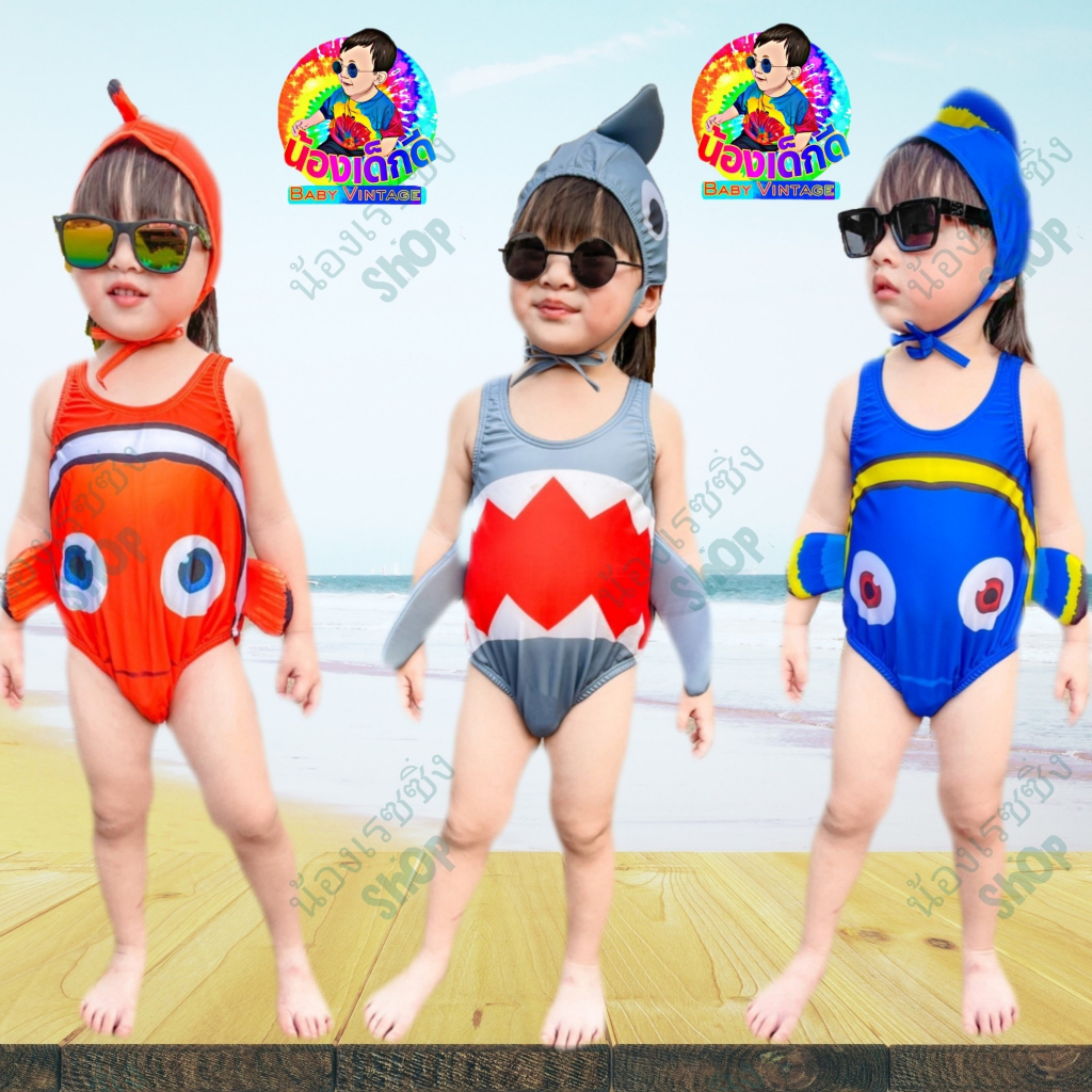 ชุดว่ายน้ำเด็กพร้อมหมวก ลายการ์ตูนปลานีโม่ และปลาฉลาม สำหรับเด็กผู้ชายและผู้หญิง ราคาไม่แพง ระบายอากาศได้ดี ส่งจากไทย