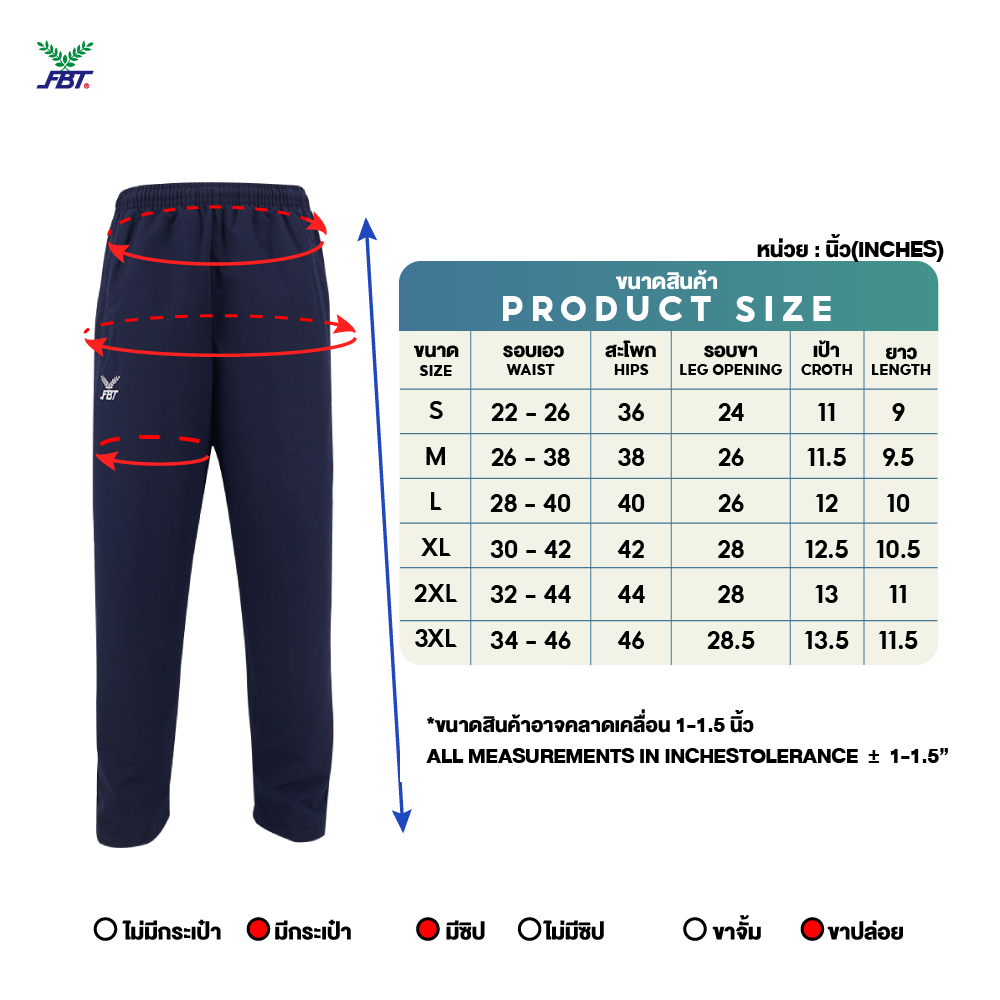 FBT กางเกงวอร์ม ผ้าร่ม ขาปล่อย กางเกงขายาว ผ้าแห้งไว ไม่อุ้มน้ำมีเชือกที่ปลายขา รหัส C2H857