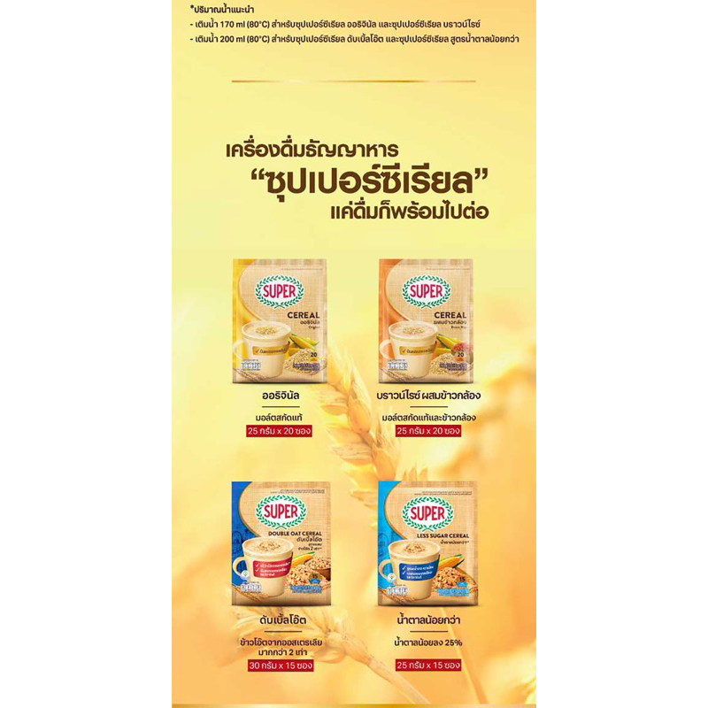 Super ซุปเปอร์ ซีเรียล เครื่องดื่มธัญญาหารปรุงสำเร็จชนิดผง (4 รสชาติ) [005]