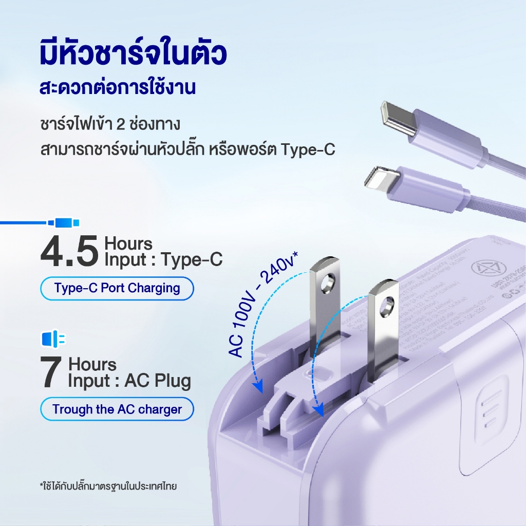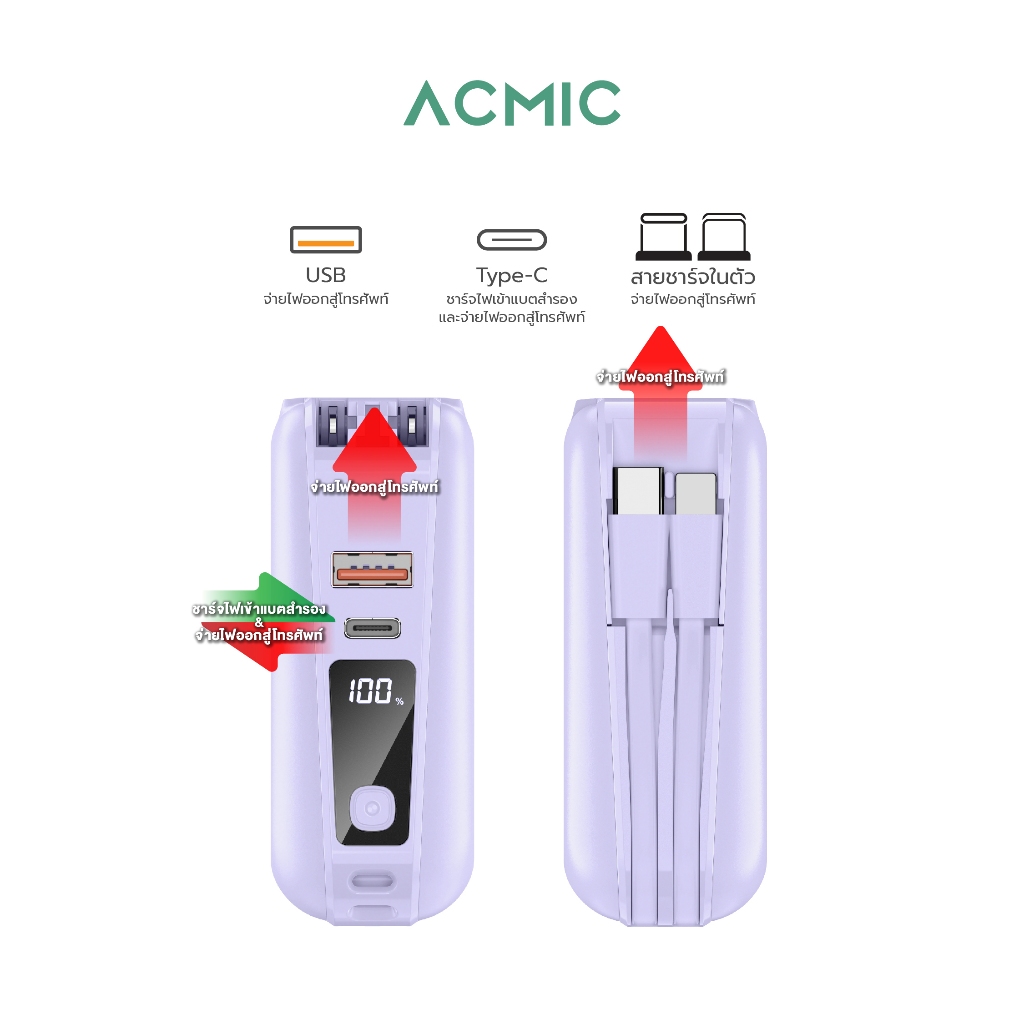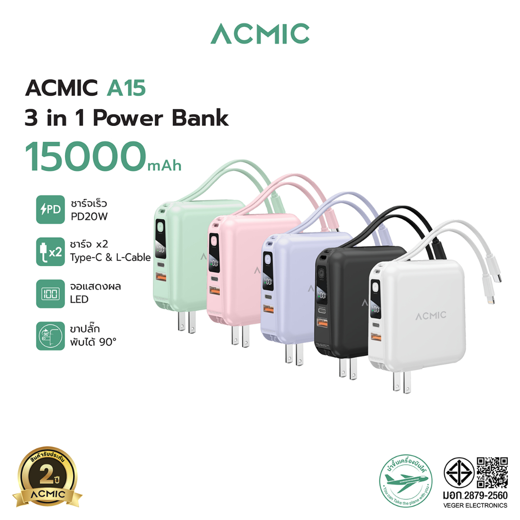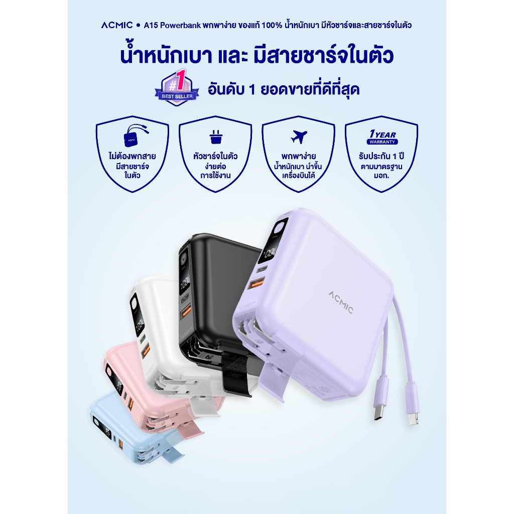 [รับประกัน 2 ปี] ACMIC A15 / APC15-01PD PRO Powerbank 15000mAh พาวเวอร์แบงค์ชาร์จเร็ว PD20W มีสายชาร์จและขาปลั๊กในตัว