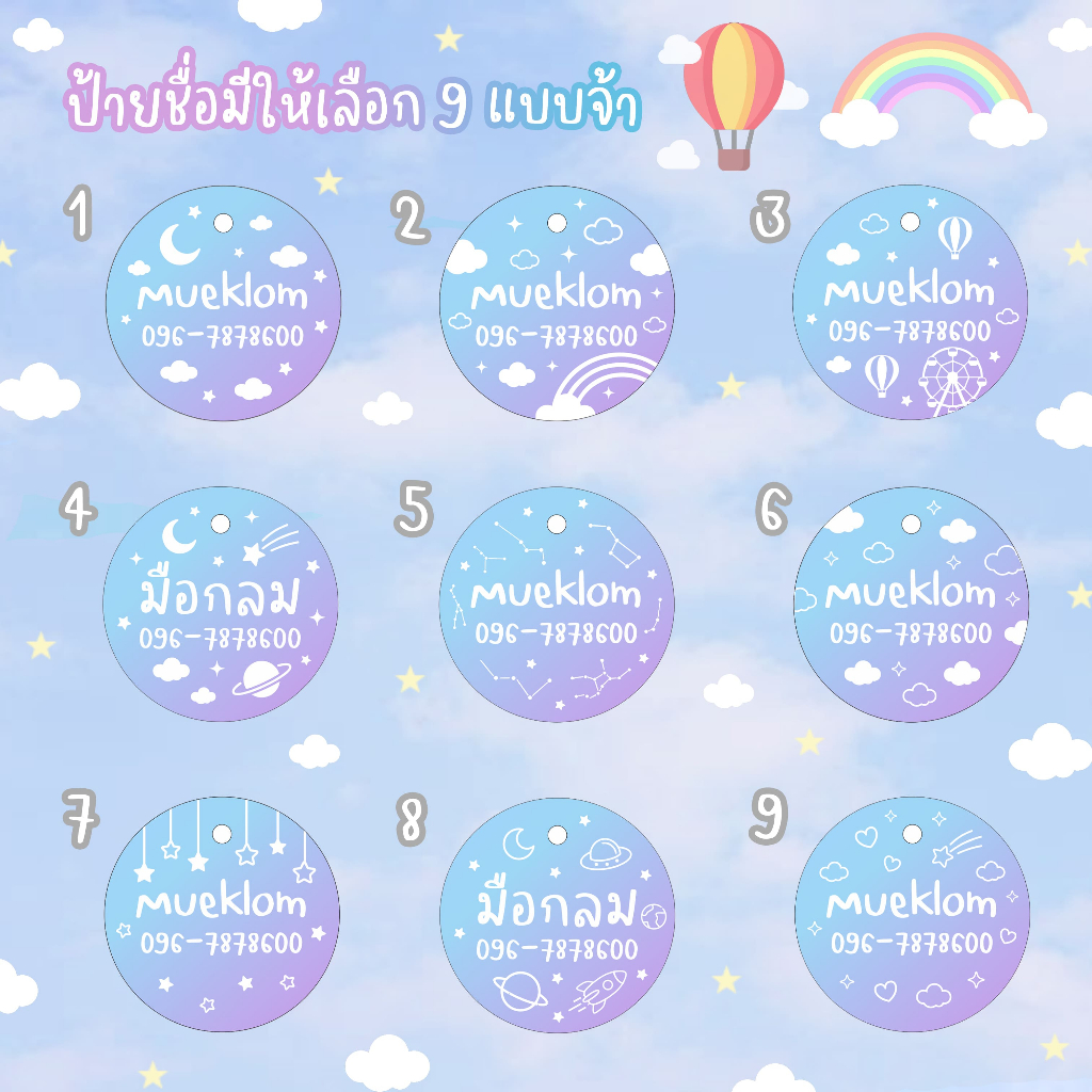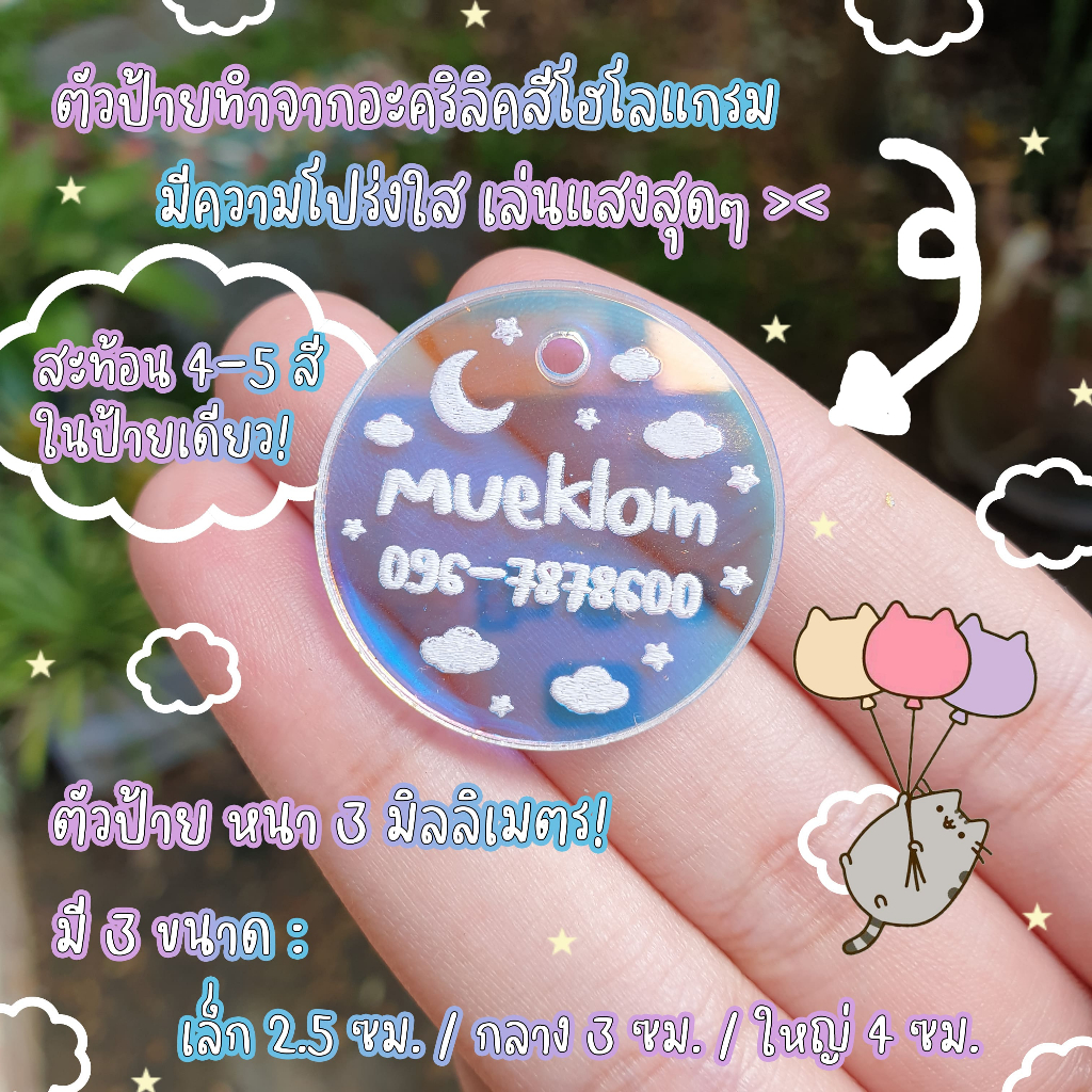 ป้ายชื่อสัตว์เลี้ยง ป้ายชื่อแมว โฮโลแกรม ลายท้องฟ้า ☁️⛅