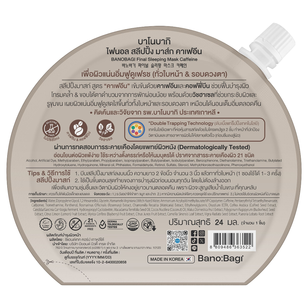 BANOBAGI - Final Sleeping Mask Caffeine (23.5 g.) สลีปปิ้งมาส์ก