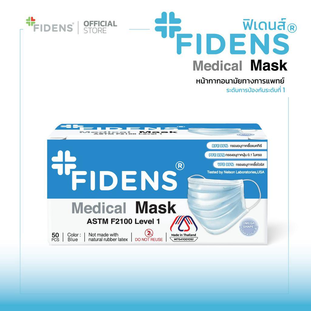 หน้ากากอนามัย FIDENS FACE MASK 3 PLYฟิเดนส์ หน้ากากอนามัยทางการแพทย์ 3 ชั้นสีฟ้า 3 กล่องแถมฟรี 1 กล่อง