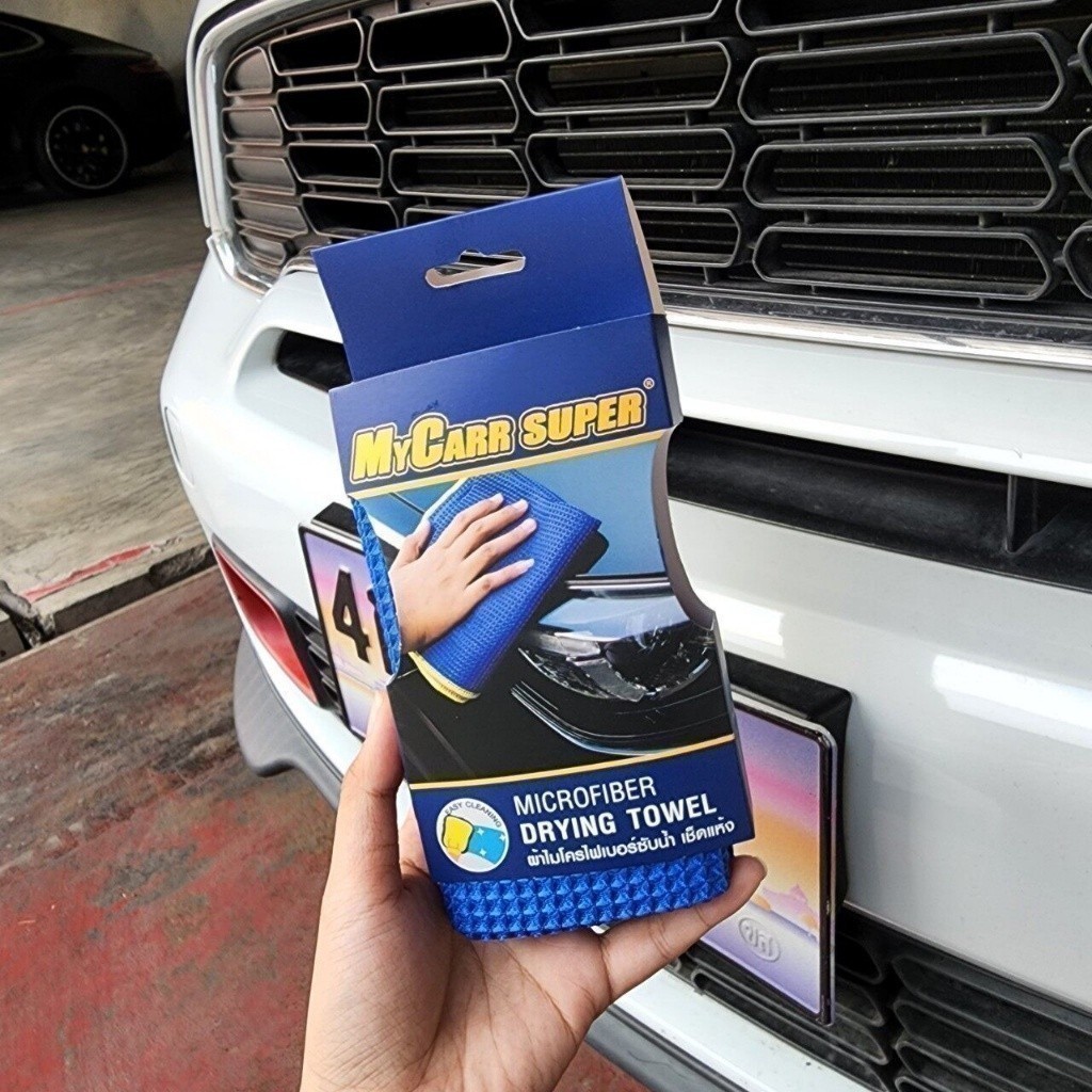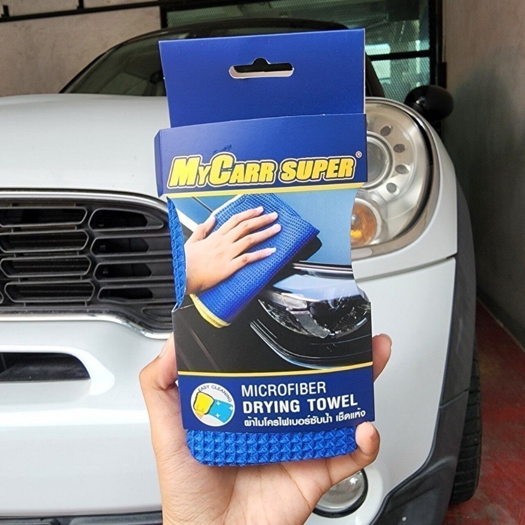 My Carr Super ผ้าวาฟเฟิล ผ้าไมโครไฟเบอร์ ซับน้ำ เช็ดแห้ง สีน้ำเงิน ขนาด 60x40 cm.