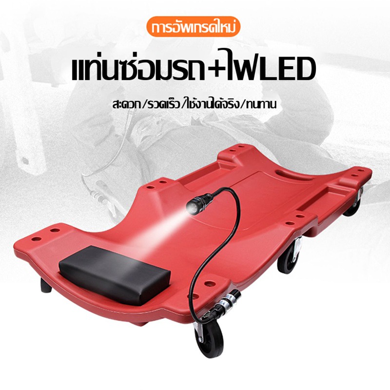 รองนอนซ่อมรถ กระดานรองนอนล้อเลื่อน กระดานล้อเลื่อนรองนอนซ่อมใต้ท้องรถ กระดานซ่อมใต้ท้องรถ 40 นิ้ว พร้อมไฟ LED