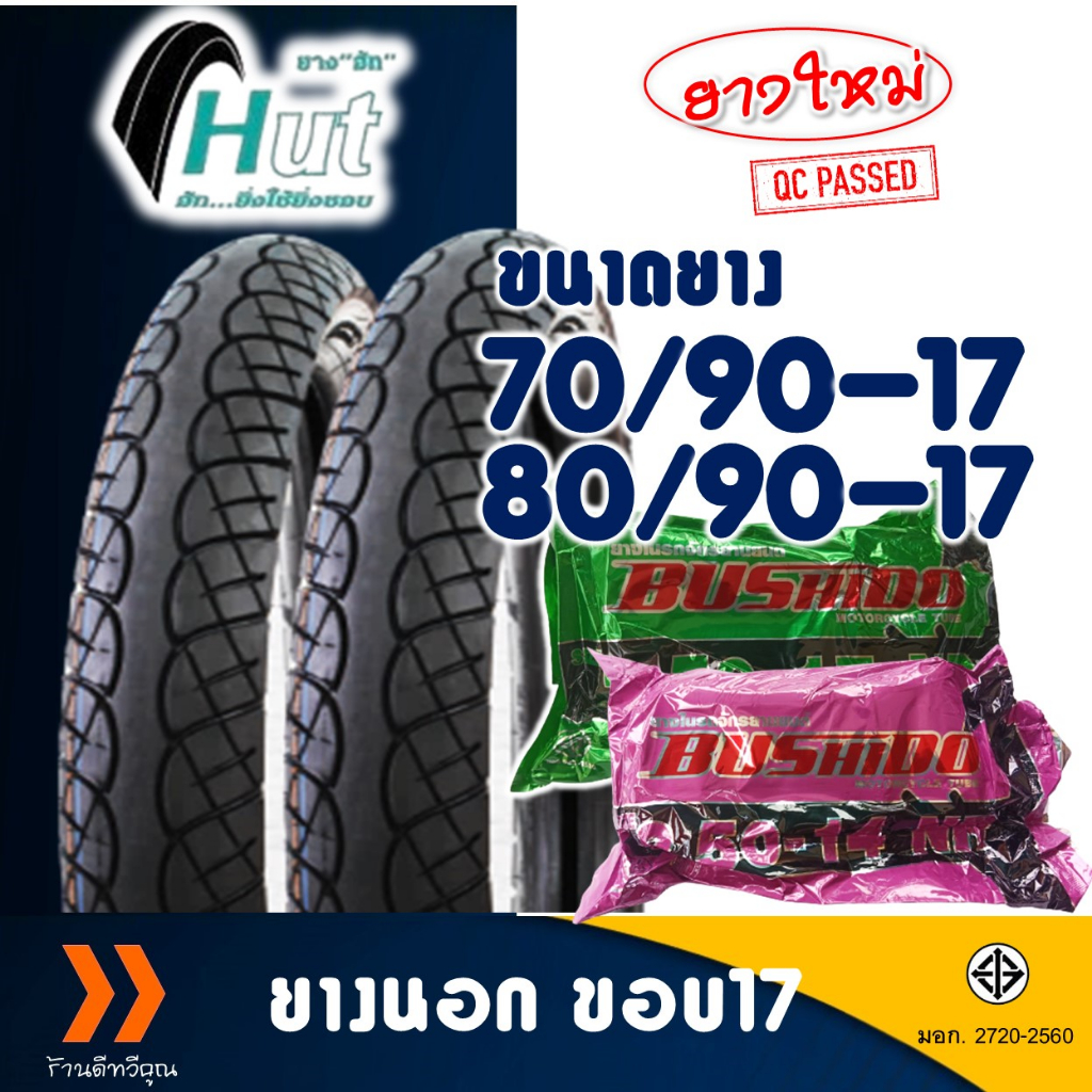 ยางนอก HUT ขอบ 17 ลายเวฟ ยางหน้า 70/90-17 , ยางหลัง 80/90-17 มีตัวเลือกสินค้า