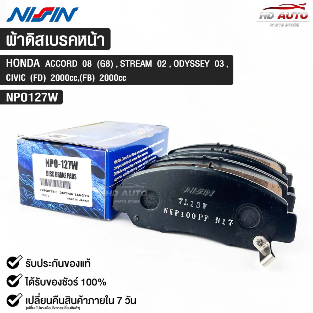 ผ้าดิสเบรคหน้า HONDA ACCORD (G8) ปี08 STREMปี02 ODYSSEYปี03 CIVIC (FD)2000cc,(FB)2000cc NISSIN นิชชิน NPO127W