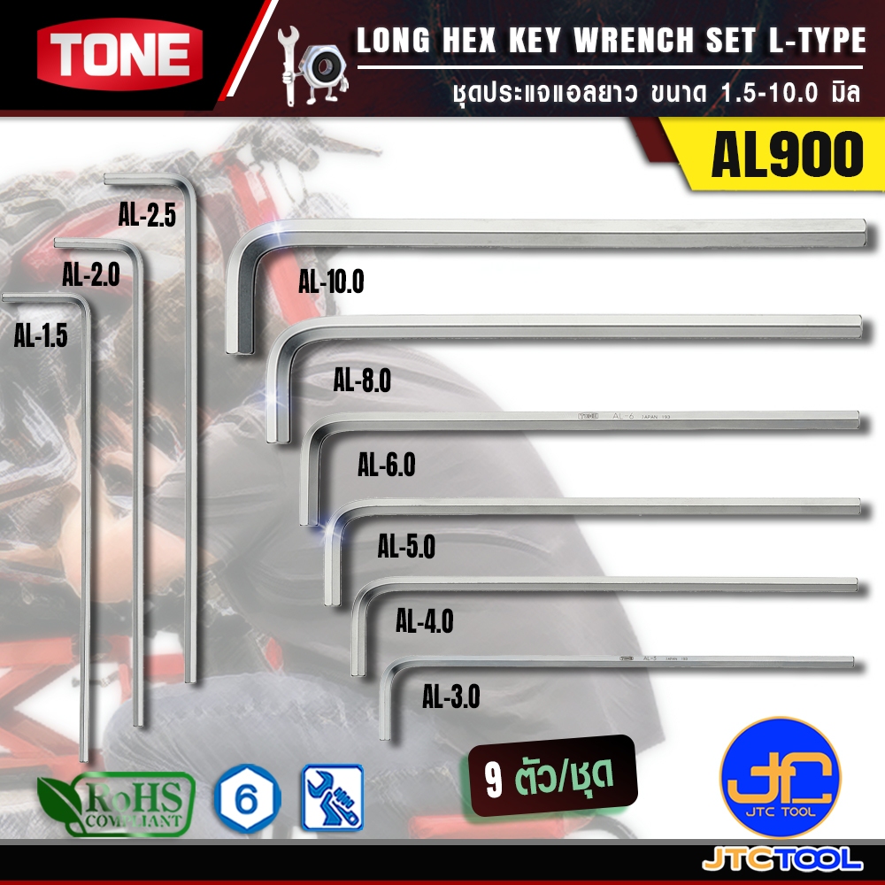 TONE ชุดประแจแอลยาว ขนาด 1.5-10.0 มิล รุ่น AL900 - Long Hex Key Wrench Set Model AL900